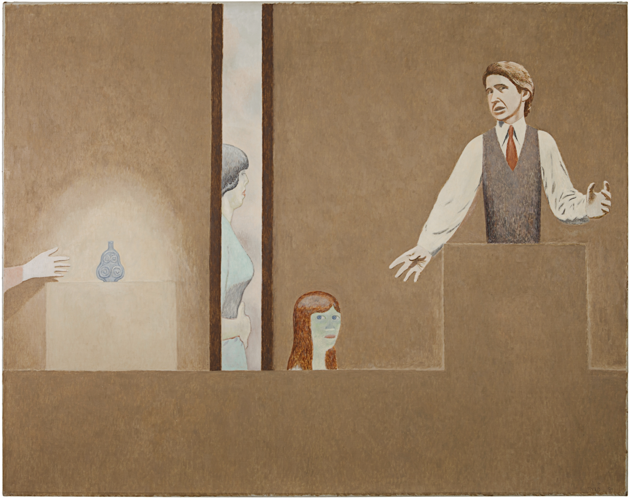 Scroll Flask and Hand, 1989. Oil on canvas 42 x 54 inches.