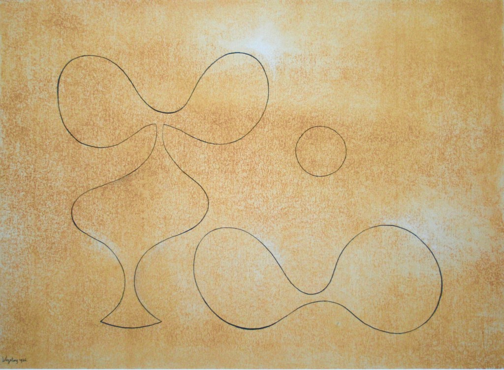Navigating between Surrealism and ‘pure’ abstraction, two dominant trends with which she was associated, Paule Vézelay developed an idiom of her own, at once highly disciplined yet poetic and human. Lines, shapes and volumes float in space or against variegated fields, with differing levels of reference to ‘reality’, shifting between Platonic rationality and emotive lyricism. Symbolism hangs in the air, but remains undefined.