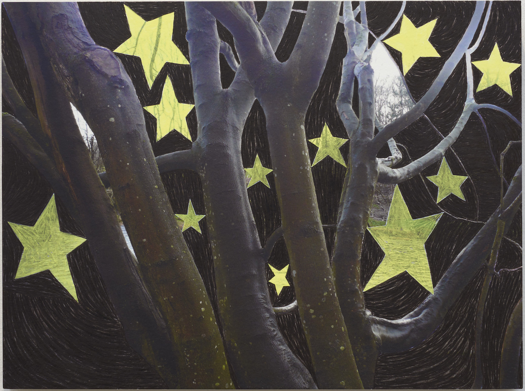acrylic and oil on photographic print on board, 30.5 x 40.5 cm